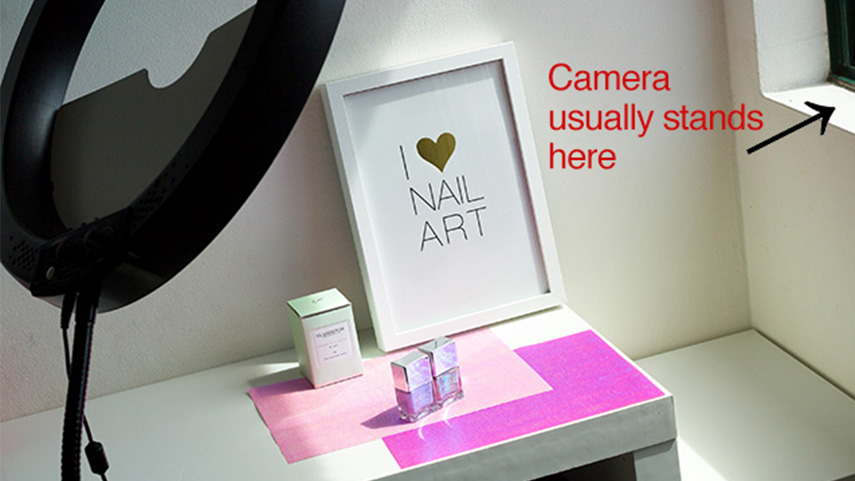 Ánh sáng tốt là điều quan trọng nhất để có một bức hình nghệ thuật móng tuyệt đẹp. Nhưng hãy tránh ánh sáng đèn huỳnh quang và ánh sáng mặt trời trực tiếp vì nó sẽ tạo ra các vết thô làm nổi bật khuyết điểm và nếp nhăn trên tay. Nếu bạn chụp ảnh bằng ánh sáng tự nhiên, nên chụp trong bóng râm, nơi có ánh sáng khuếch tán hơn. Còn nếu chụp trong nhà mà không có ánh sáng tự nhiên, nên sử dụng loại đèn trắng sáng như đèn dùng cho studio chuyên nghiệp hoặc đèn vòng Aurora. Loại đèn vòng này sẽ giúp tạo những bức ảnh tuyệt đẹp ngay cả vào ban đêm. Nó rất thích hợp để quay video hướng dẫn làm móng, ảnh chân dung và cả những bức ảnh tự chụp.